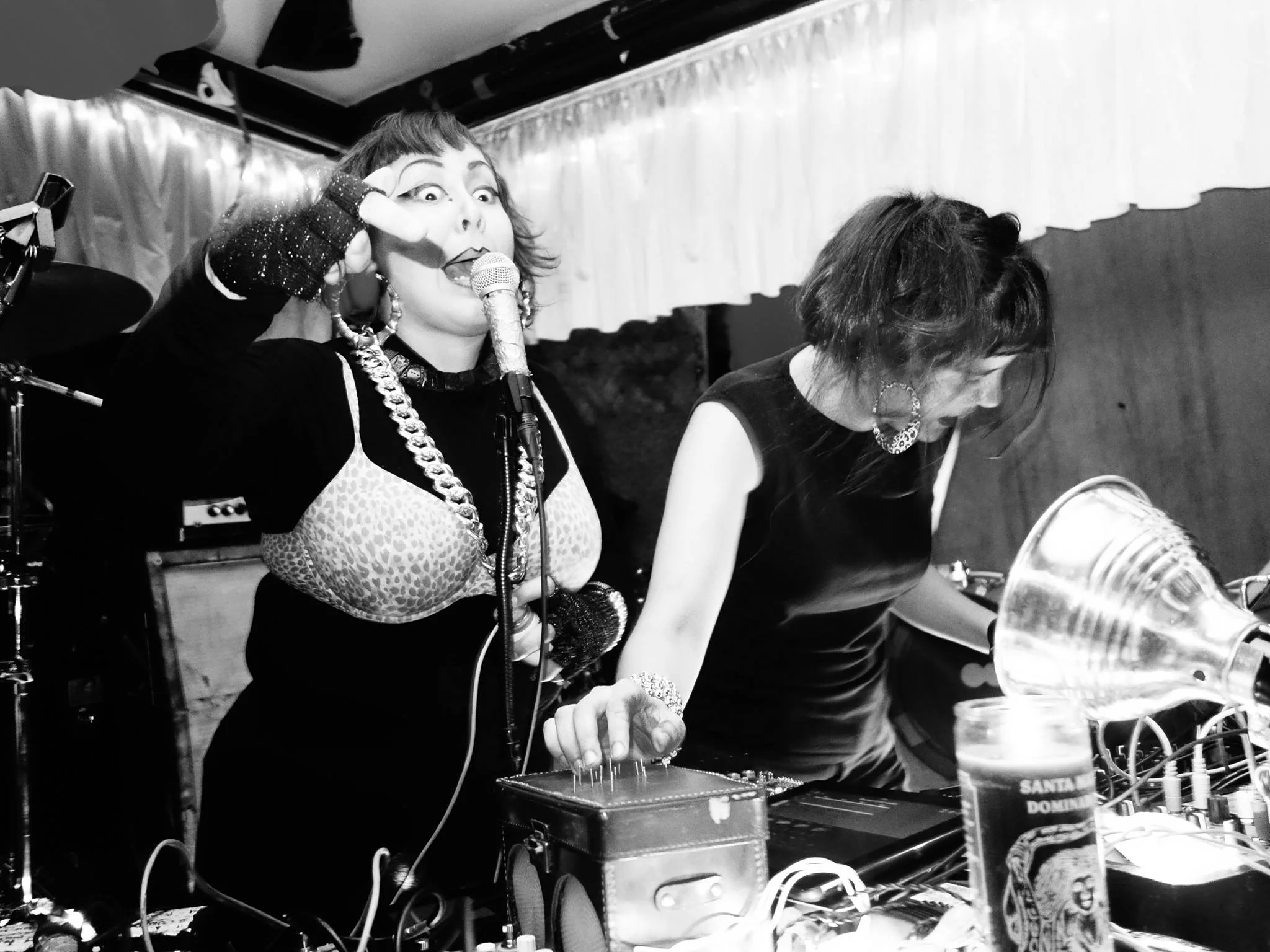 Attend a live recording of a new LP from Las Sucias! Las Sucias is a feminist noise reggaeton duo formed by Danishta Rivero and Alexandra Buschman, mixing anti-patriarchal riotgrrrl lyrics, afro-caribbean rhythms, brujería noise and possessed vocals. Each performance is a ritual that combines all of the senses and elevates into a higher realm, inspiring the listener to dance, speak in tongues, laugh hysterically and get possessed by the spirits awoken.
