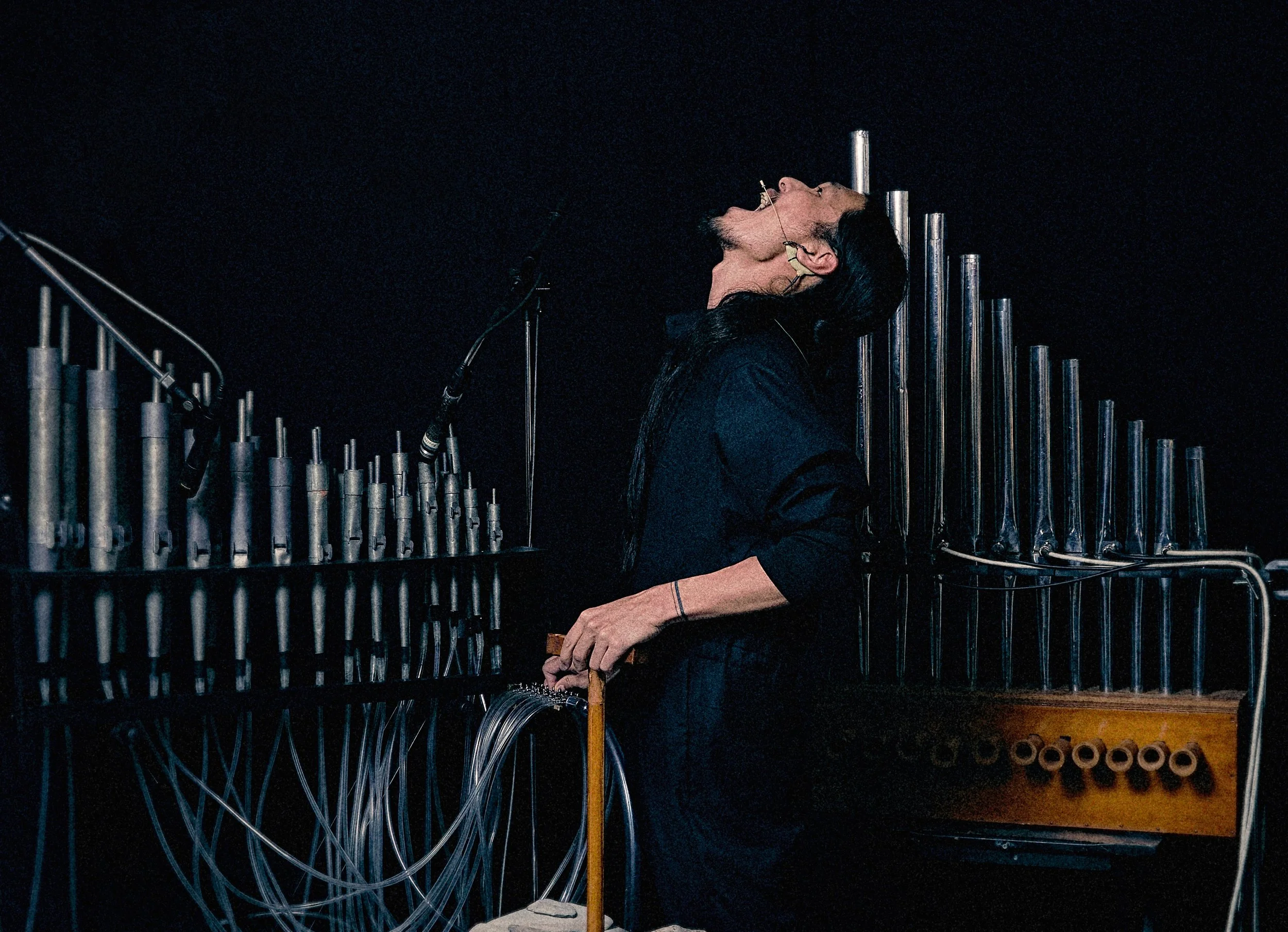 Yosuke Fujita, also known as Fuji||||||||||ta, is a sound artist, organist and composer based in Japan. Fujita’s artistic practice centers on the exploration, manipulation and presentation of unheard sounds and noises commonly found within nature, including the use of air, water and even the echolocation of bats. In 2009 Fujita hand fabricated a Pipe Organ that has only 11 pipes and no keyboard. Fujita conceived and built it using his imagination, without any prior or specialized knowledge. Designed to create a landscape rather than function as a musical instrument, he took the idea from the Japanese “gagaku”. The air pump (called “fuigo”) which is kept moving by the left hand when playing and is based on associations with an ancient blacksmith. This is a unique instrument that Fujita had to learn to play. Recently, he has added synthesized water sounds from multiple aquariums alongside his pipe organ and his voice.